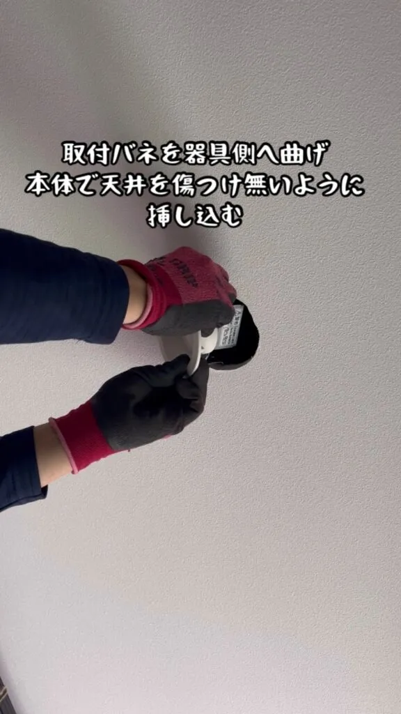 本体を天井穴にゆっくりと差し込んで、固定します。